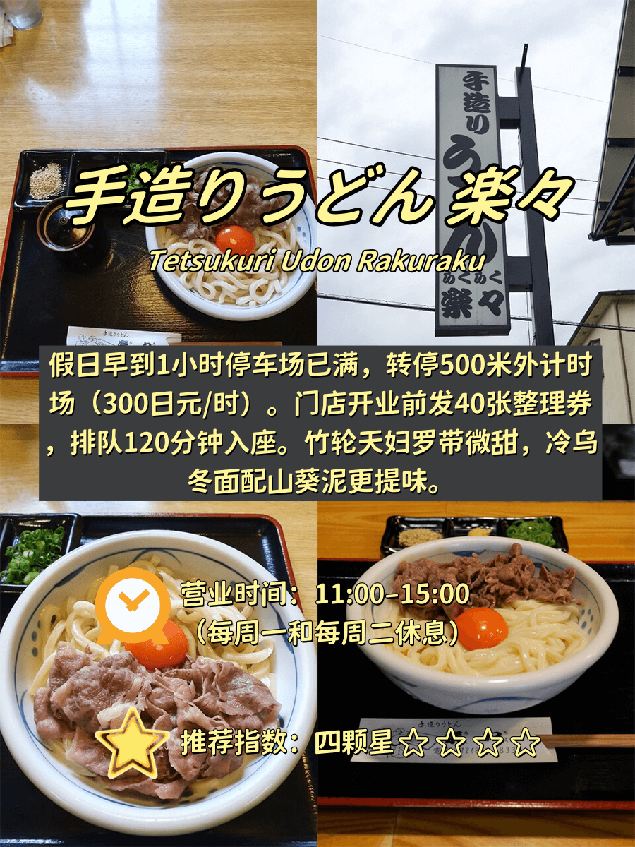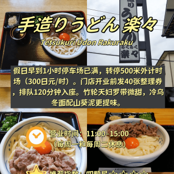 附营业时间雷区+招牌吃法+步行参考 ​​1️⃣ 手造りうどん 楽々​​ 📍 ​​难波商圈(图片未标具体位置)​​⏰ ​​11:00-15:00|🚫周一、二休|💰…