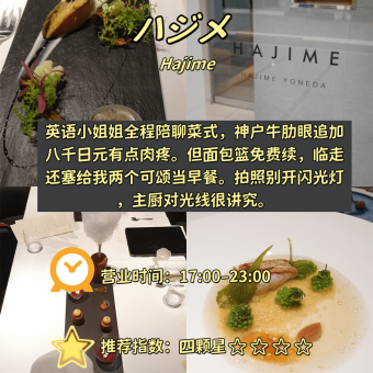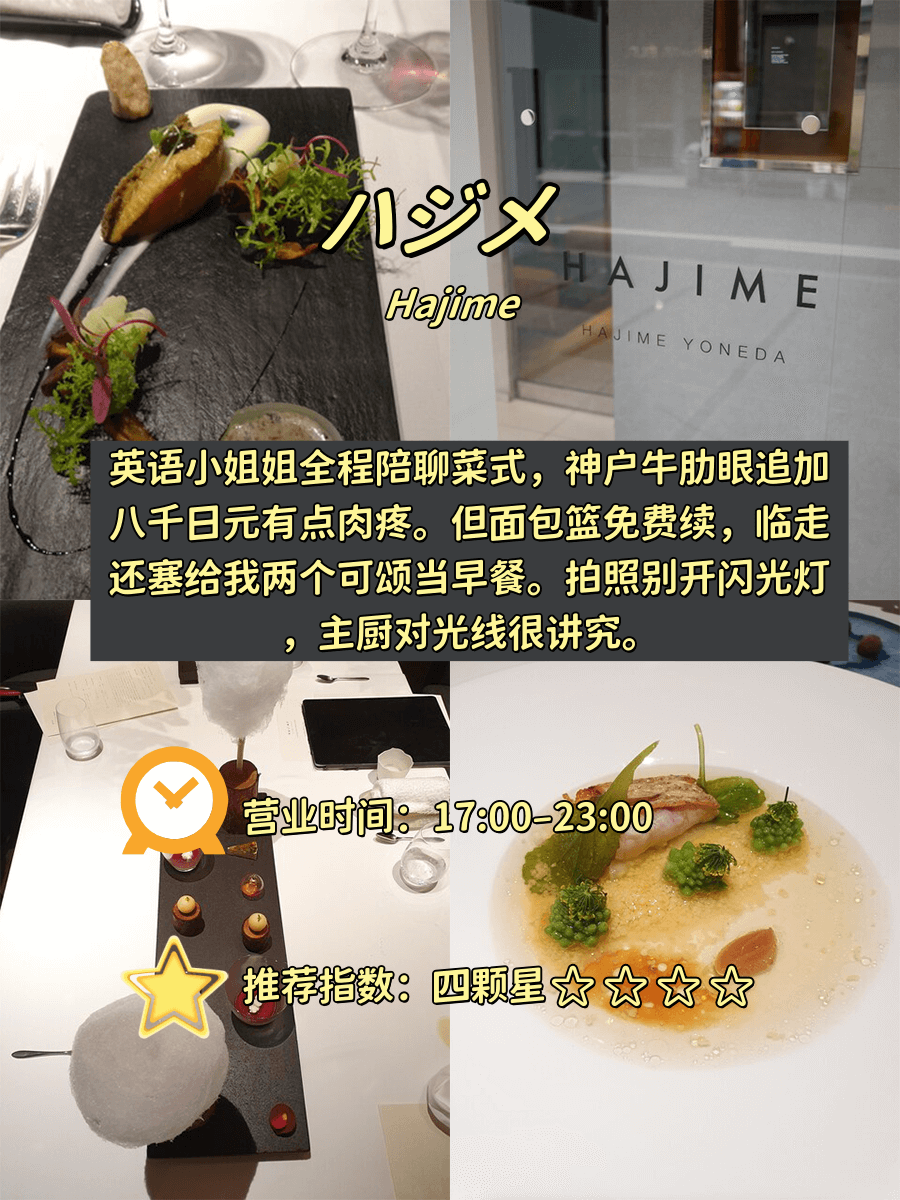 附预约+招牌菜价目+服务全方位攻略 ​​1️⃣ ハジメ(Hajime)|Tabelog顶流​​ 📍 ​​位置未标|重点:英语服务+忌闪光灯​​⏰ 17:00-2…