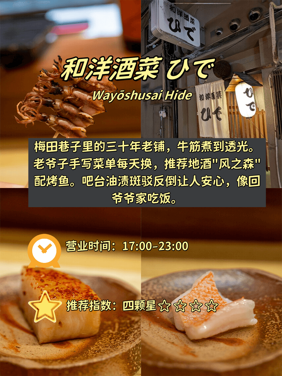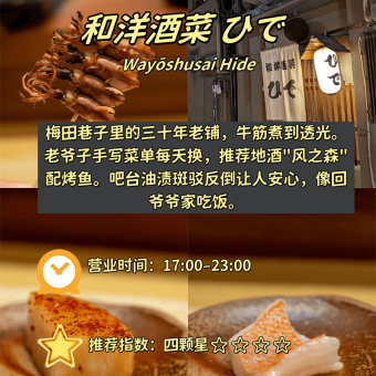 附预约技巧+招牌吃法+雷点预警 ​​1️⃣ 和洋酒菜 ひで(30年老铺人情味)​​ 📍 ​​心斋桥站步行8分钟|梅田巷内(认灯笼)​​⏰ ​​17:00-23:…
