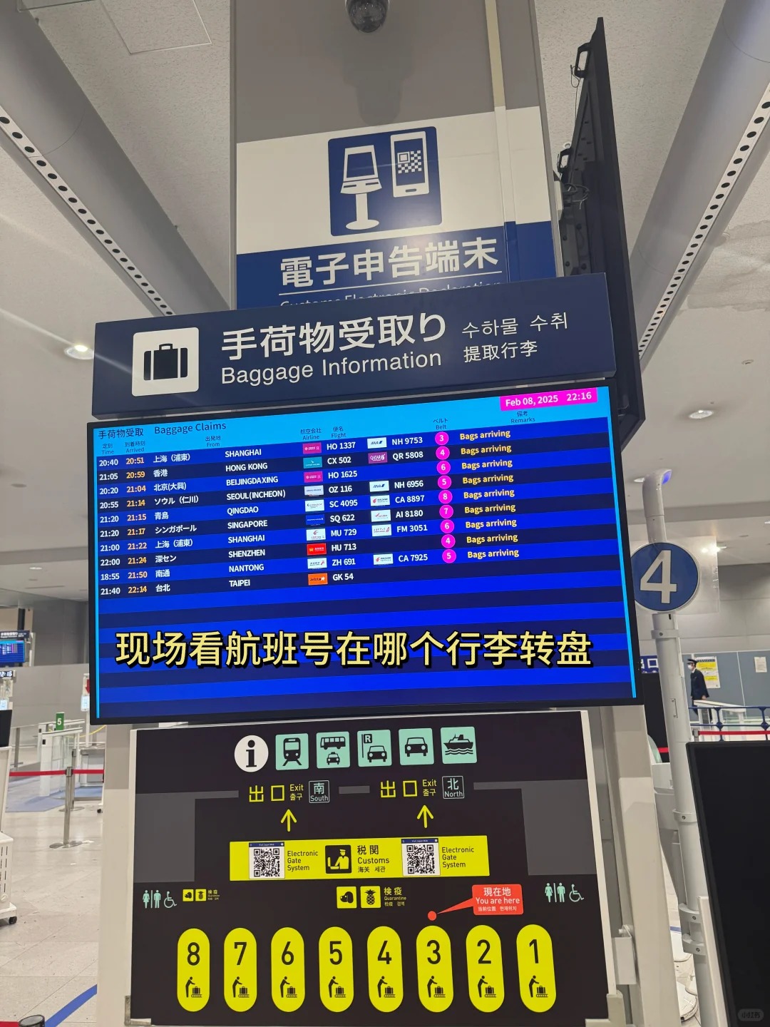 ▫️电子屏看航班号对应的行李转盘
