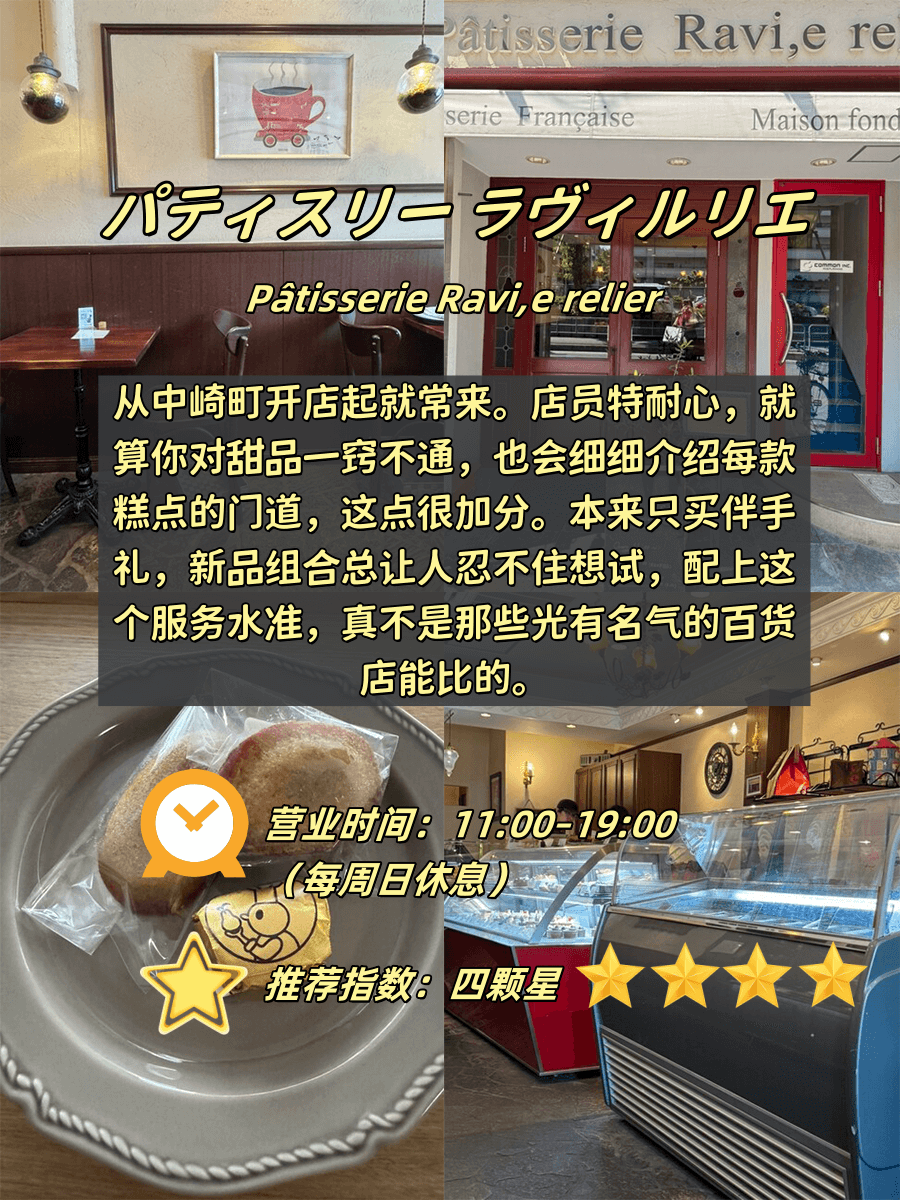 1️⃣ Pâtisserie Ravi,e relier(⏰11:00-19:00|⛔ 周日休|🖼️ 推荐4星)