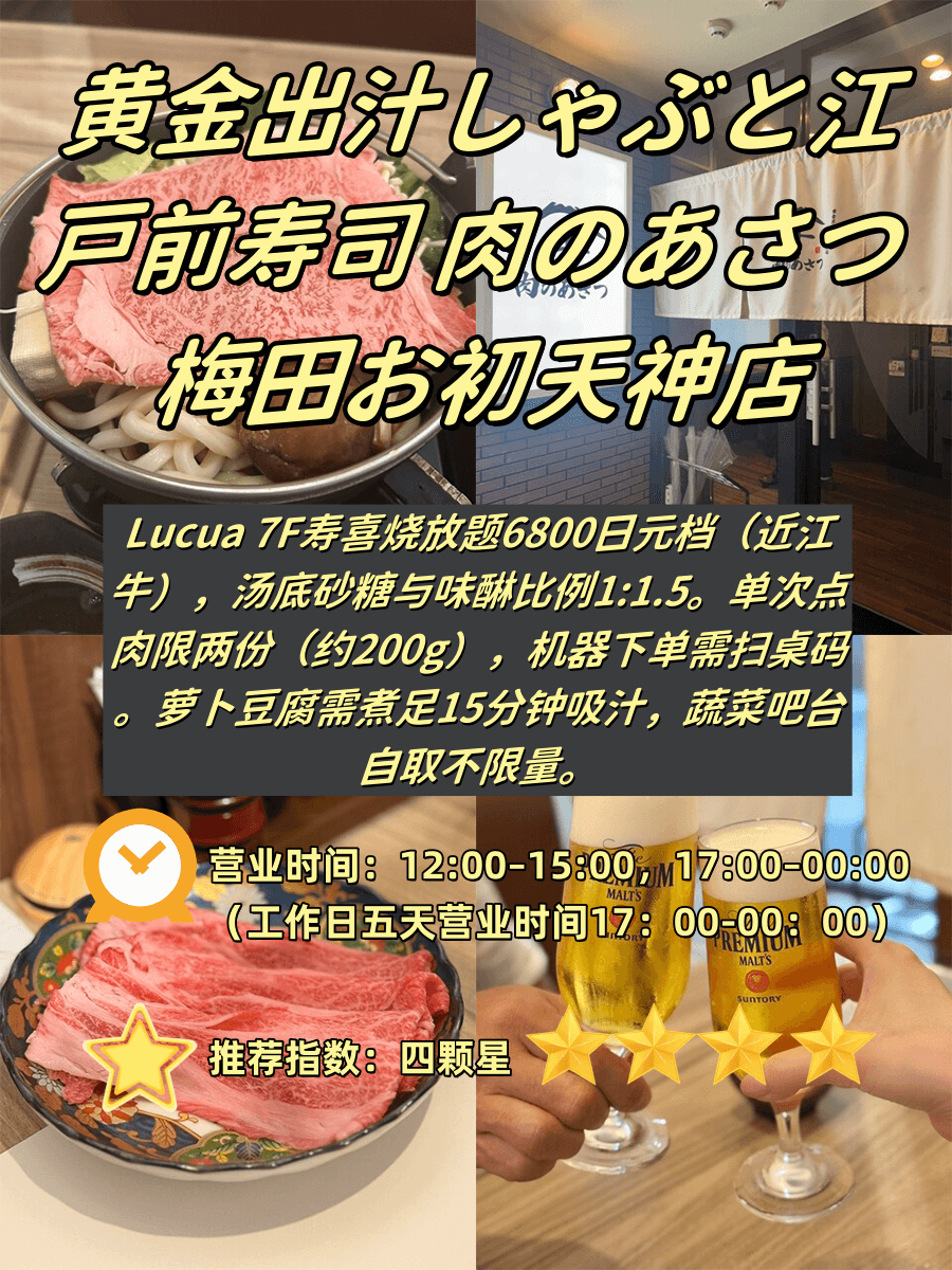 附位置精确到分钟+必看避坑+省钱包房秘诀 1️⃣ ​​肉のあさつ​​(Lucua百货7楼) 📍 ​​梅田站直通3分钟|Lucua找“黄金出汁”招牌​​⏰ ​​午…