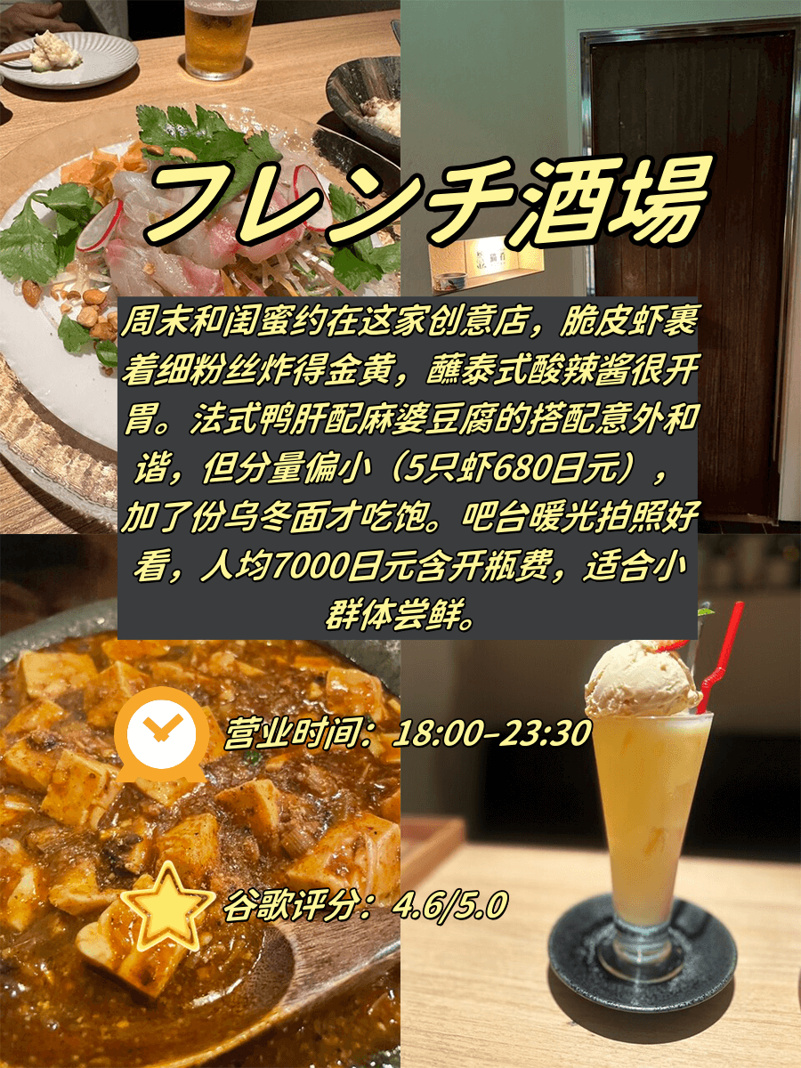 附错峰时间+隐藏操作+实测步行坐标 ​​1️⃣ フレンチ酒場(创意混血王)​​ 📍 ​​心斋桥站步行8分钟|独栋洋房白灯牌​​ ⏰ 18:00-23:30|💰 …