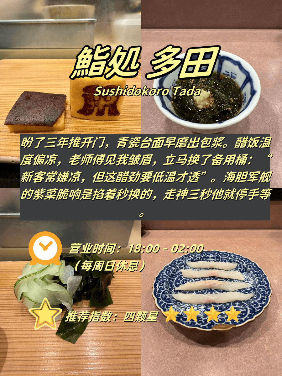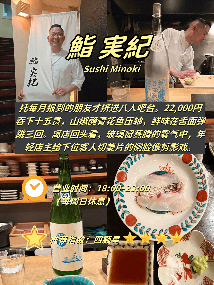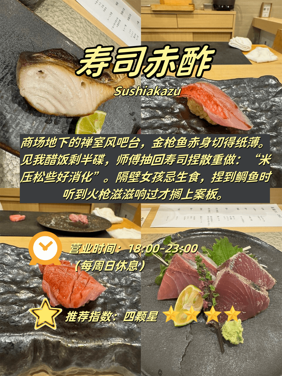 附步行时间+必点项+周日全休预警 1️⃣ 赤酢(📍站口步行3分钟) ⏰18:00-23:00|🚫周日休|💰人均1万5円✅ 主打薄切金枪鱼…