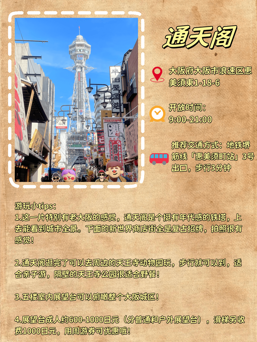 被追问了10086次!亲测高效逛吃拍三不误,跟着玩就完事儿👇 📍通天阁 📌 大阪府大阪市浪速区恵美須東1-18-6 ⏰ 开放时间:9:00-21:00 🚇 …