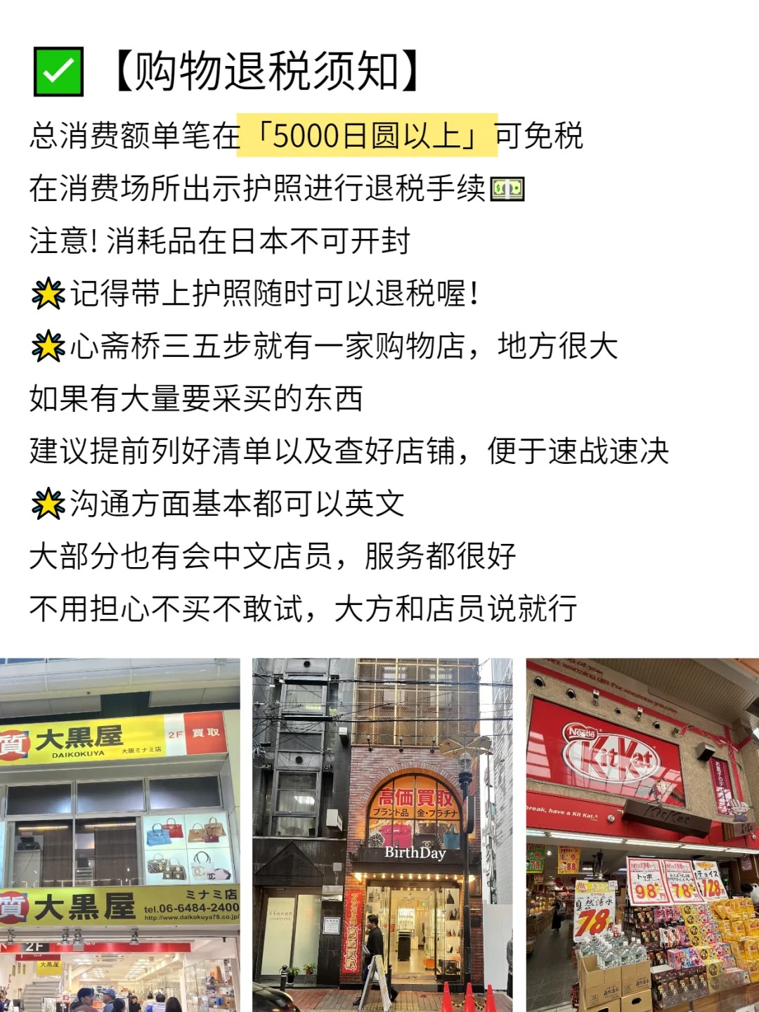🙋♀️如何到达? 🚇交通攻略: 地铁御堂筋线「心斋桥站」5、6号口出站直达商圈核心 推荐路线:上午先冲道顿堀(格力高广告牌合影+章鱼烧/蟹道乐)→下午…