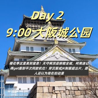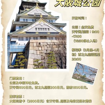 🏯 大阪城公园:穿越百年的战国史诗 核心玩法:登顶 天守阁 俯瞰全城(门票600日元),8层展望台的镀金鯱虎浮雕在阳光下熠熠生辉;樱花季…