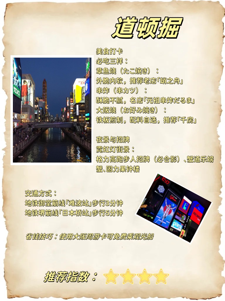 姐妹们!刚从大阪回来就忍不住整理这份2天1夜攻略!好吃好玩好拍还省钱,本暴走党亲测不踩雷,赶紧收藏抄作业👇 Day1:心斋桥→道顿堀→黑门市场→通天阁 …